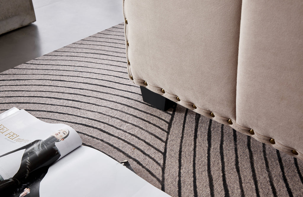 Detail view of Santosa Champagne Velvet Bed leg and stud finish.