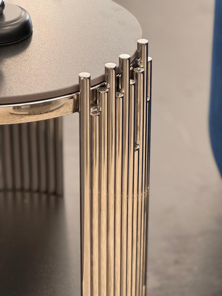 The coordinating side table, with a 45cm diameter, serves as the perfect companion piece or a chic standalone accent. It mirrors the coffee table’s design, complete with a round marble top and your choice of matching frame and finish options.