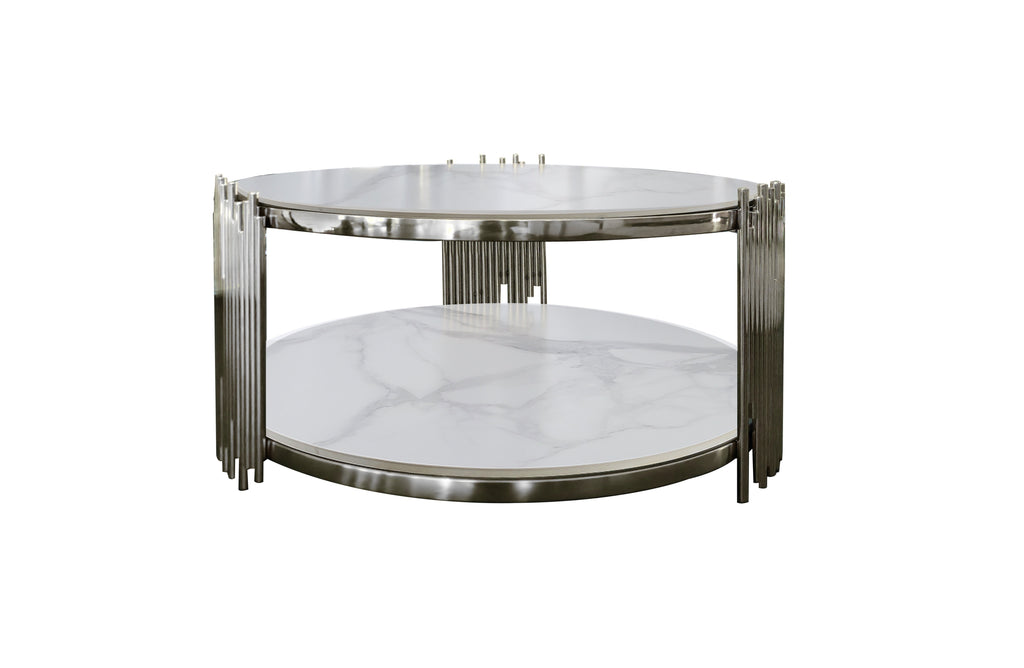 The coffee table features a generous 95cm diameter, offering ample surface space for drinks, décor, and everyday essentials. Its round marble top exudes timeless elegance and durability, making it both a beautiful and practical addition to your home. A matching marble shelf underneath adds a second layer of storage, ideal for books, magazines, or decorative accents.