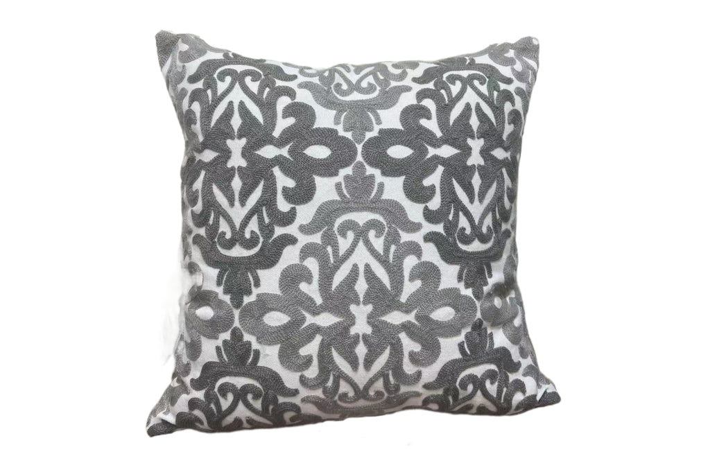 Add a refined elegance to your space with the Shaun Embroidery Luxury Cushion — a designer pillow showcasing a grey and white damask-style pattern. Made from a smooth, cotton or cotton-blend fabric, this cushion blends comfort with a classic decorative flair. The symmetrical, ornate design brings timeless charm to modern classic, neutral, or transitional interiors, making it a graceful addition to bedrooms, living rooms, or lounge setups.