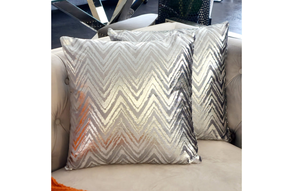 Ideal for those seeking a stylish and chic accent, the Silver Zig Zag Designer Cushion complements a wide range of interior styles and effortlessly enhances any space.