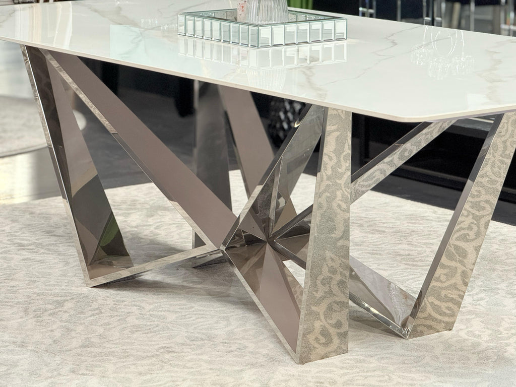 Don't miss out on the opportunity to make a statement with the Lenox Dining Table in Silver. Elevate your dining experience and create a stylish, modern space that will impress your guests. Place your order today and transform your dining area into a stunning masterpiece.