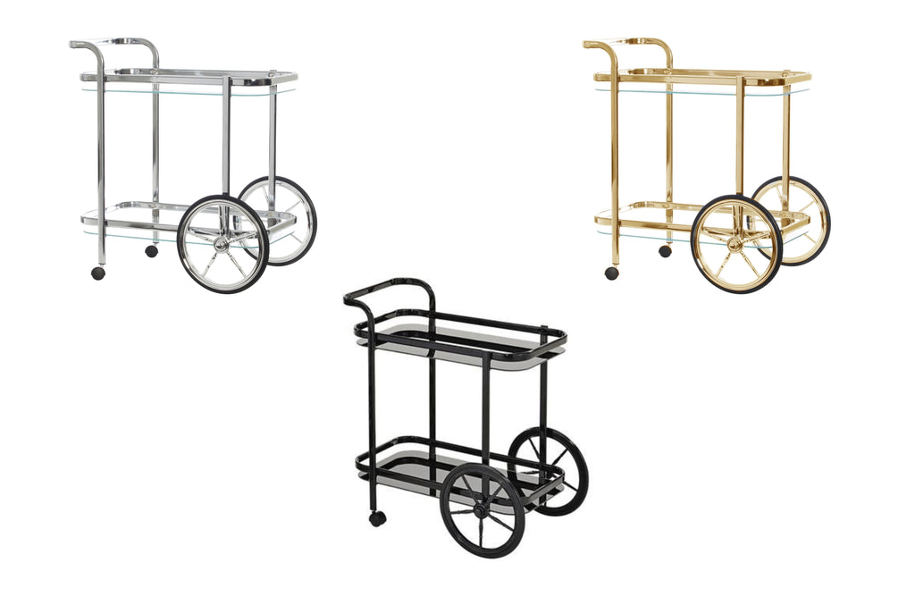 Glass Bar Cart Trolley With Cart Wheels - 3 Colours Available