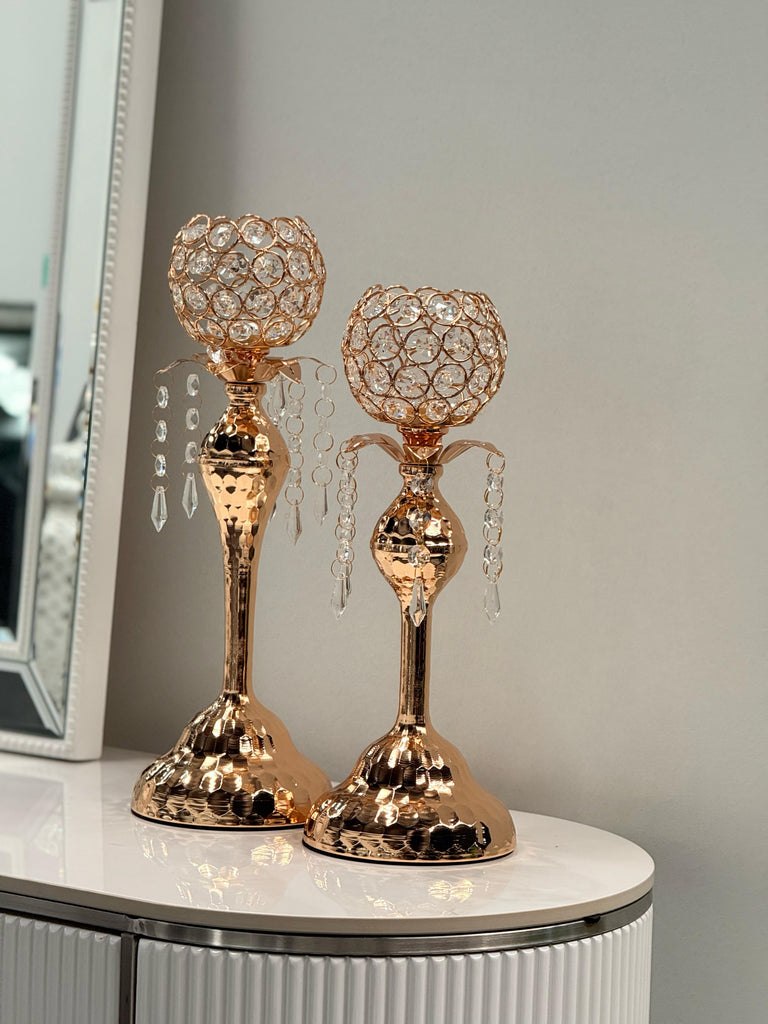 Available in two sizes - small (33cm) and large (37cm), these candle holders offer versatility to suit different spaces and decorative preferences. The Crystal Ball Candle Holders create a captivating display as they beautifully refract light, adding an enchanting ambiance to any room.