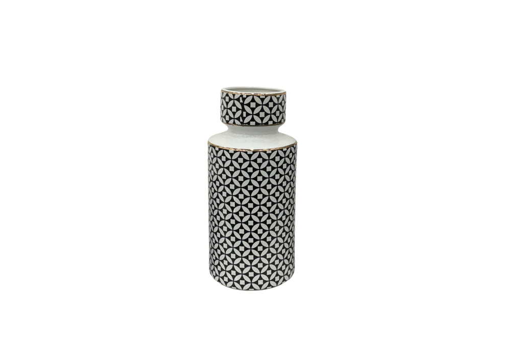 The small Hampton Flower Vase measures 14cm in width and 26cm in height. It features a beautiful combination of white and gold, adding a touch of elegance and refinement to any space. It is perfect for displaying smaller floral arrangements or as a standalone decorative piece.