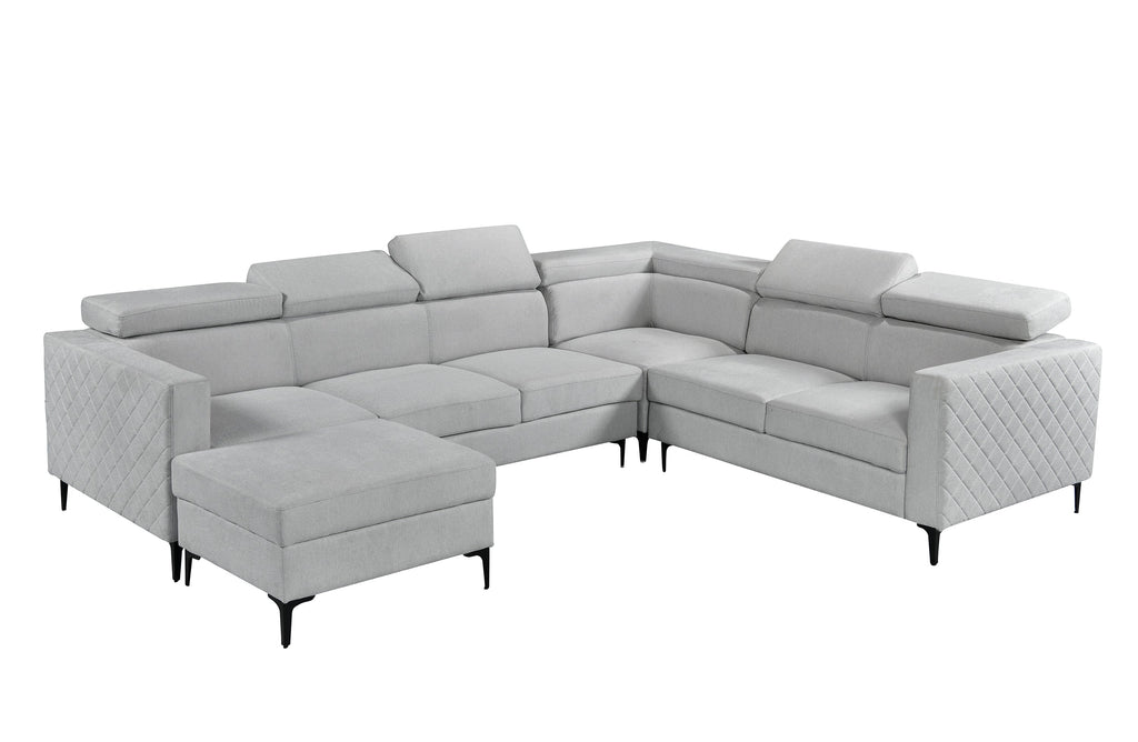 The modular design allows you the layout to fit your unique space and needs, whether you're looking to create a cosy conversation circle or a spacious seating area. The adjustable headrests ensure maximum comfort for a relaxing experience, while the optional storage ottoman/chaise offers the perfect spot to stash throw blankets, pillows, and other essentials.