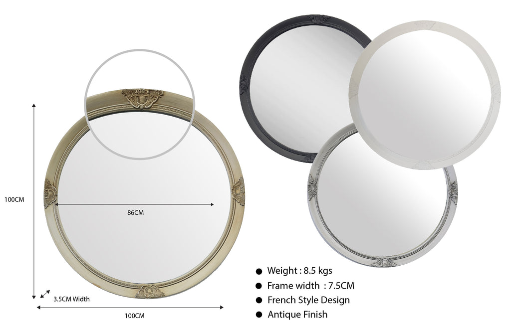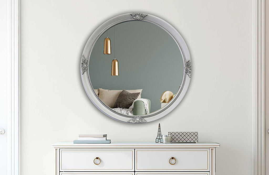 This ornate, French provincial style mirror is perfect for adding a touch of class to any room. Featuring intricate carvings and an antique silver finish, it'll make you feel like you're living in a palace! With five colours to choose from, you're sure to find the perfect one for your home. Shipping is calculated based on metropolitan areas, so please contact us if you're interested to get a quote.
