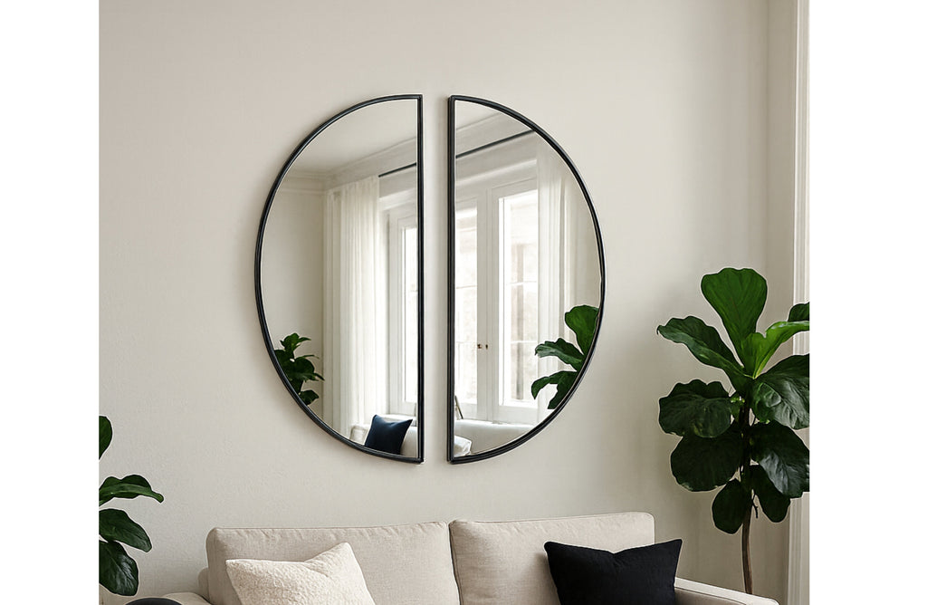 Add a bold touch of contemporary elegance to your space with the Half Moon Metal Mirror. Featuring a striking half-moon design framed in sleek metal, this versatile piece pairs beautifully with modern and minimalist interiors alike. Whether you opt for the rich black or luxurious gold finish, the flat mirror surface adds depth and dimension to any room. Available in two sizes, the Half Moon Metal Mirror works beautifully as a standalone statement or styled in a set for maximum impact.
