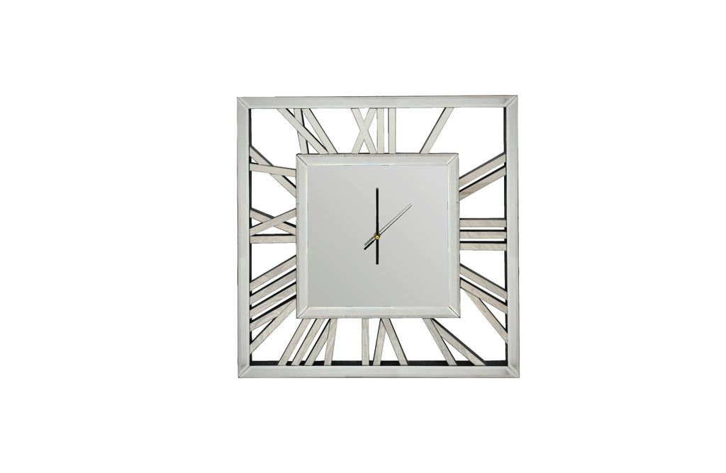 Decorative Silver Mirrored Square Clock - 60cm