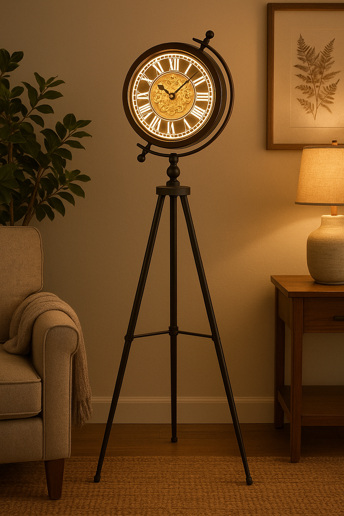 The added LED backlighting provides soft illumination that highlights the clock's inner motion, making it a dual-purpose piece—a functional floor lamp and a dynamic art clock. Perfect for lofts, creative studios, or bold entryways, the Lumina is a shows topping décor element designed to impress both day and night.